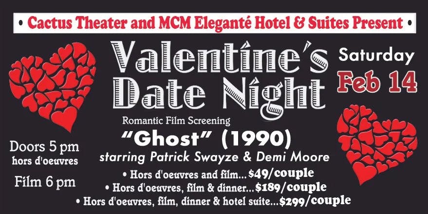 Valentine's Date Night with Cactus TheaterSee all promotionsPerfect Valentines Date Night! Book with Cactus Theater Promotions See All Valentine's Date Night with Cactus Theater